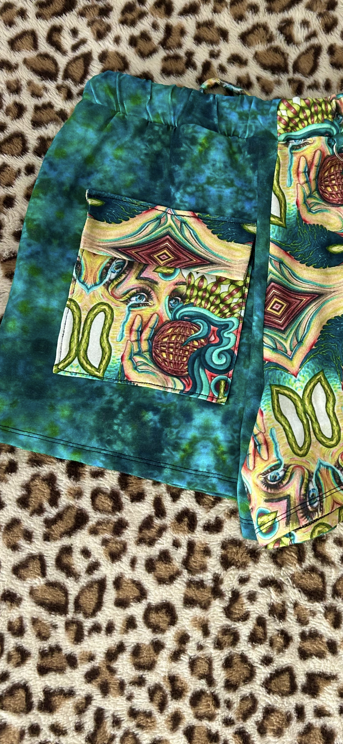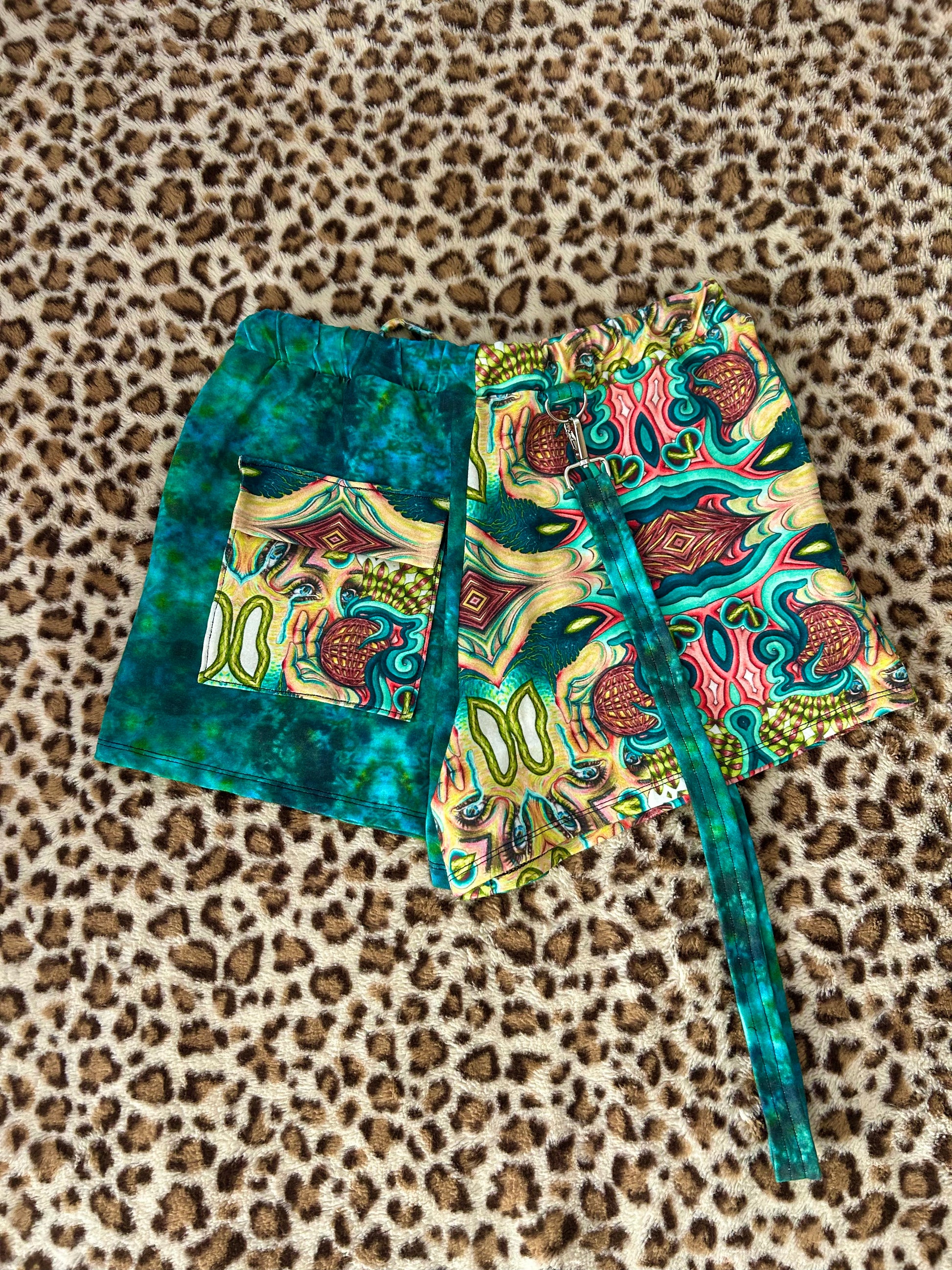 Lounge shorts with cargo pocket and detachable suspender! The waistband on these is elastic and measures 28" (super adjustable) and hips would best fit 33-37"