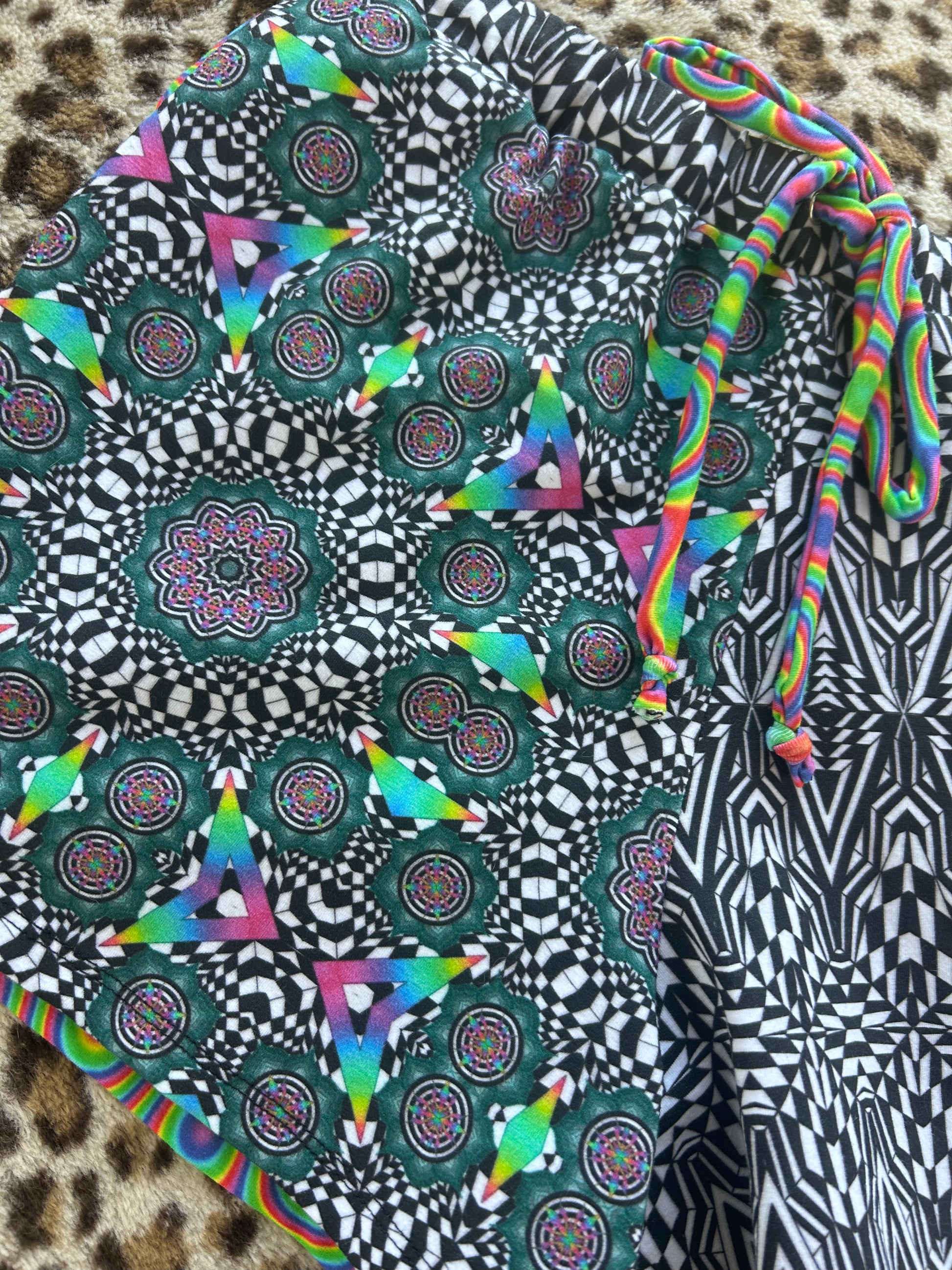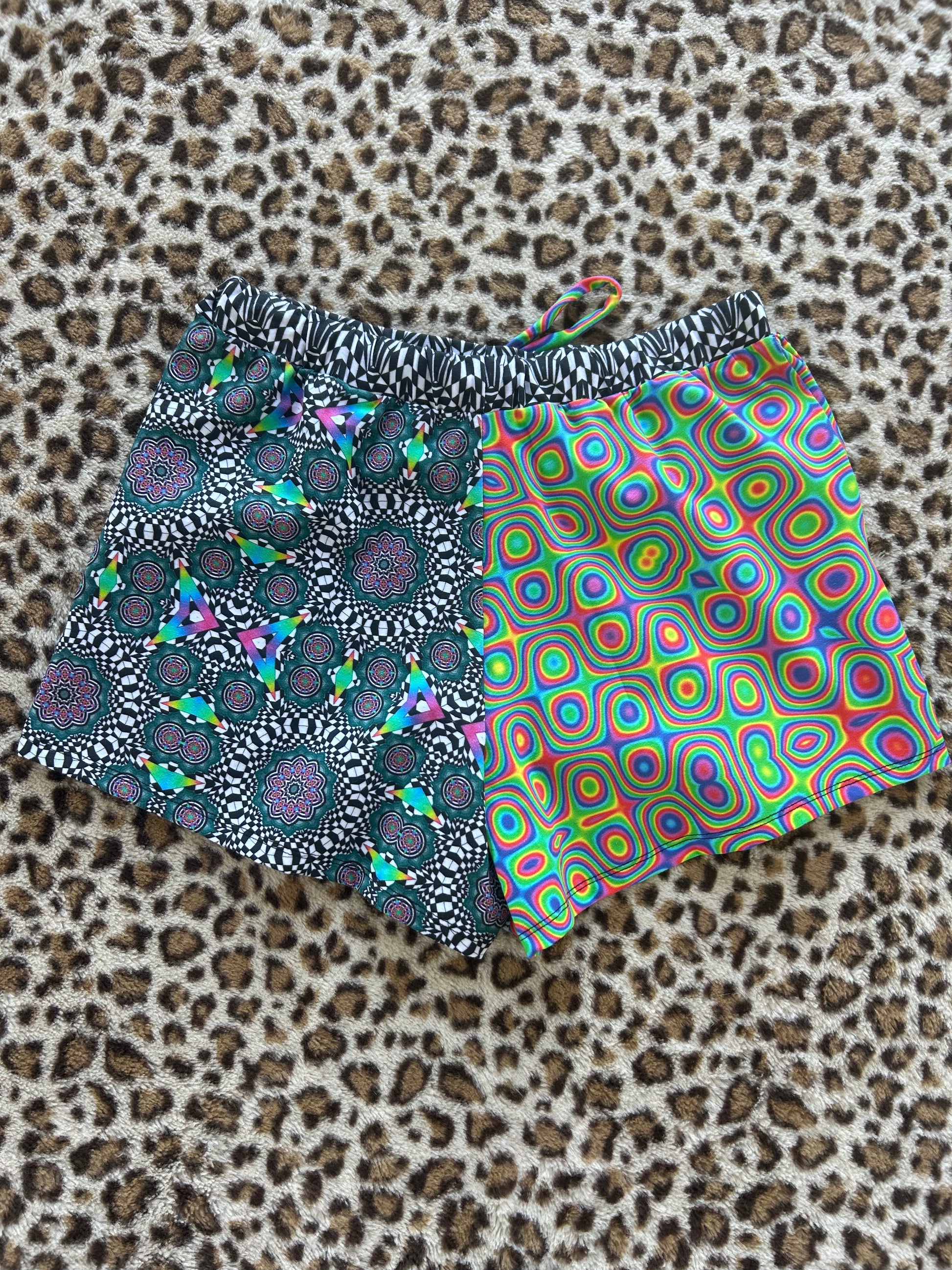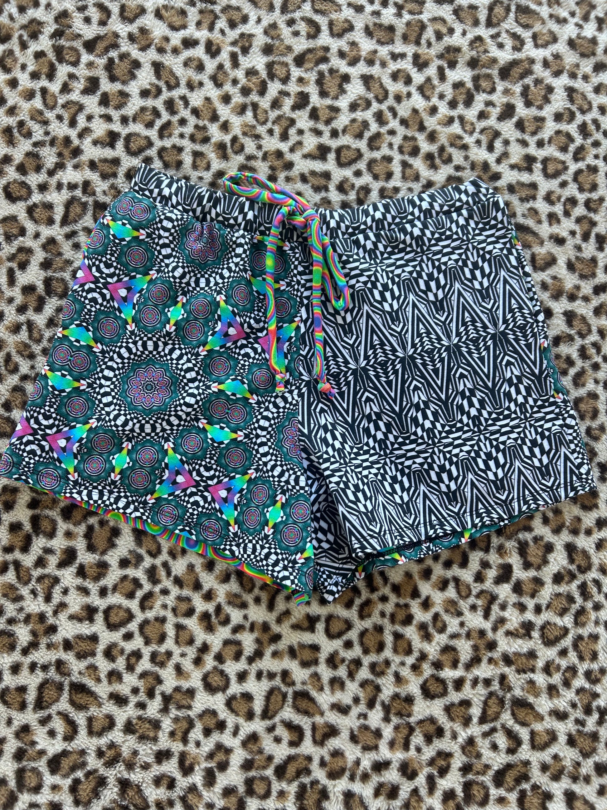 XS/S Lounge shorts made with Zayo fabrics! Waist measures 27" and will stretch if needed! Made with an elastic waistband/tie and side pockets.