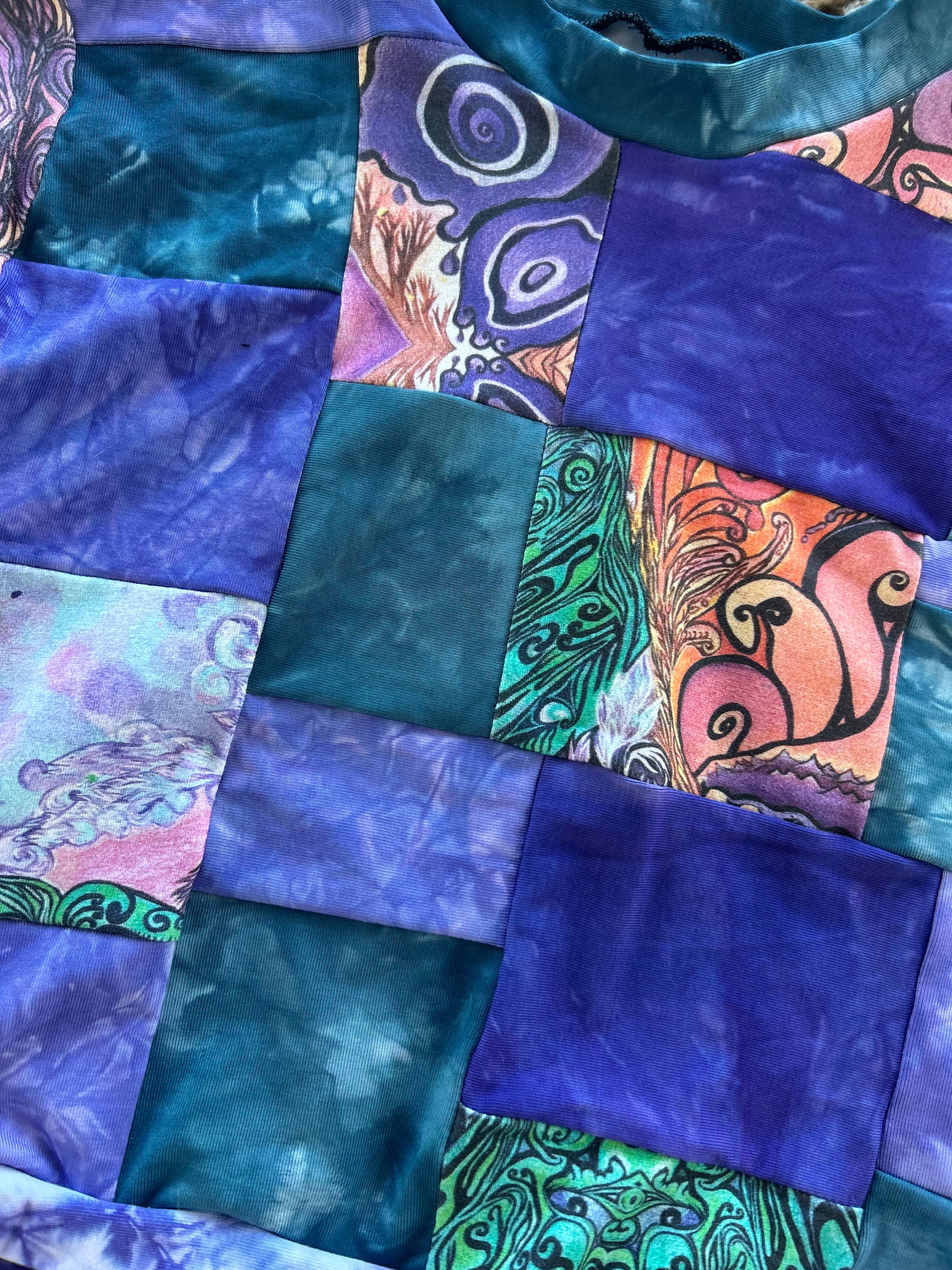 XS/S patchwork cropped t-shirt! Scraps from _lo_tide :')