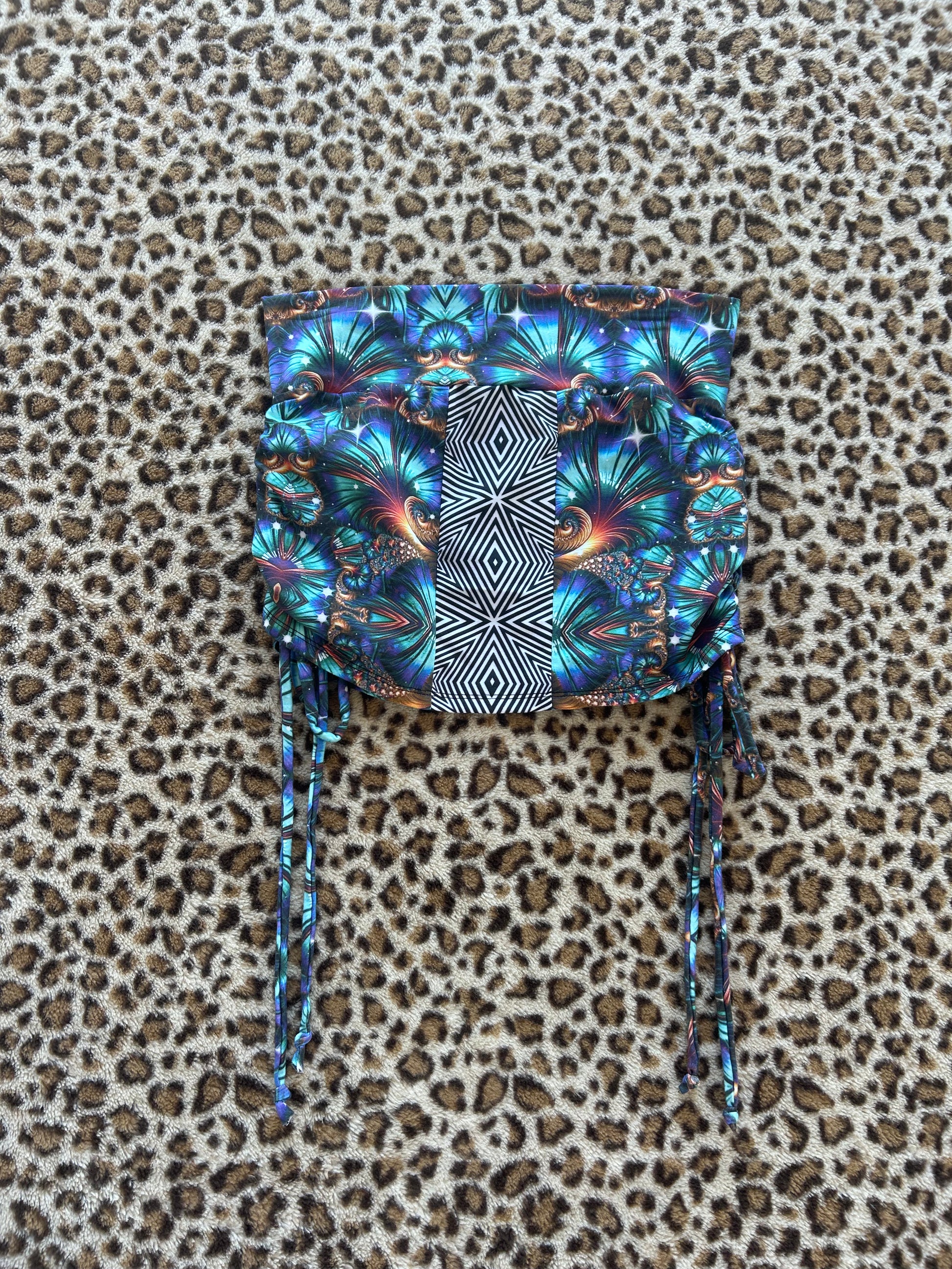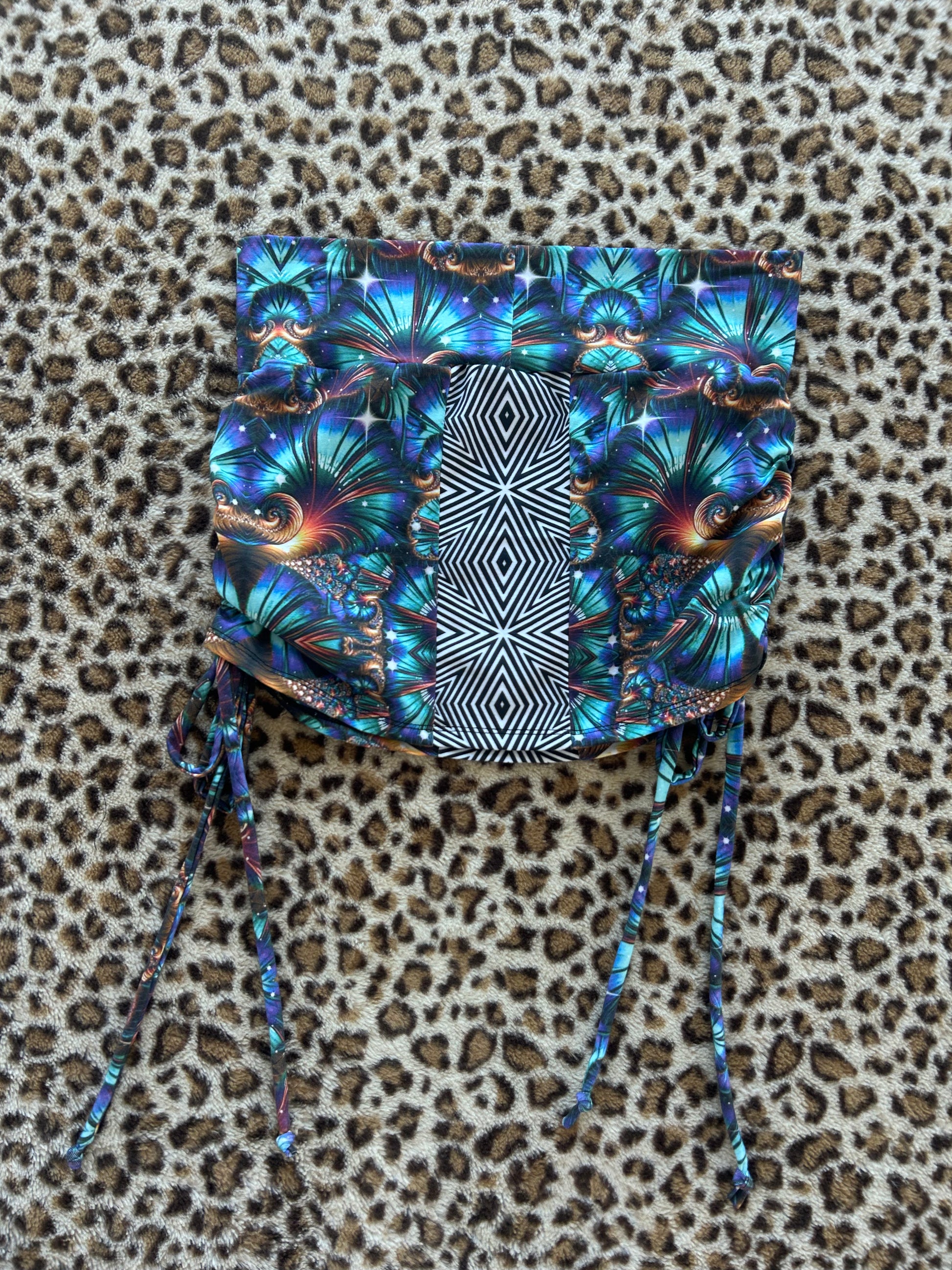 Size M/L side cinched skirt! Waist measures about 30" and will stretch up to 3-4" Last photo for style reference :)